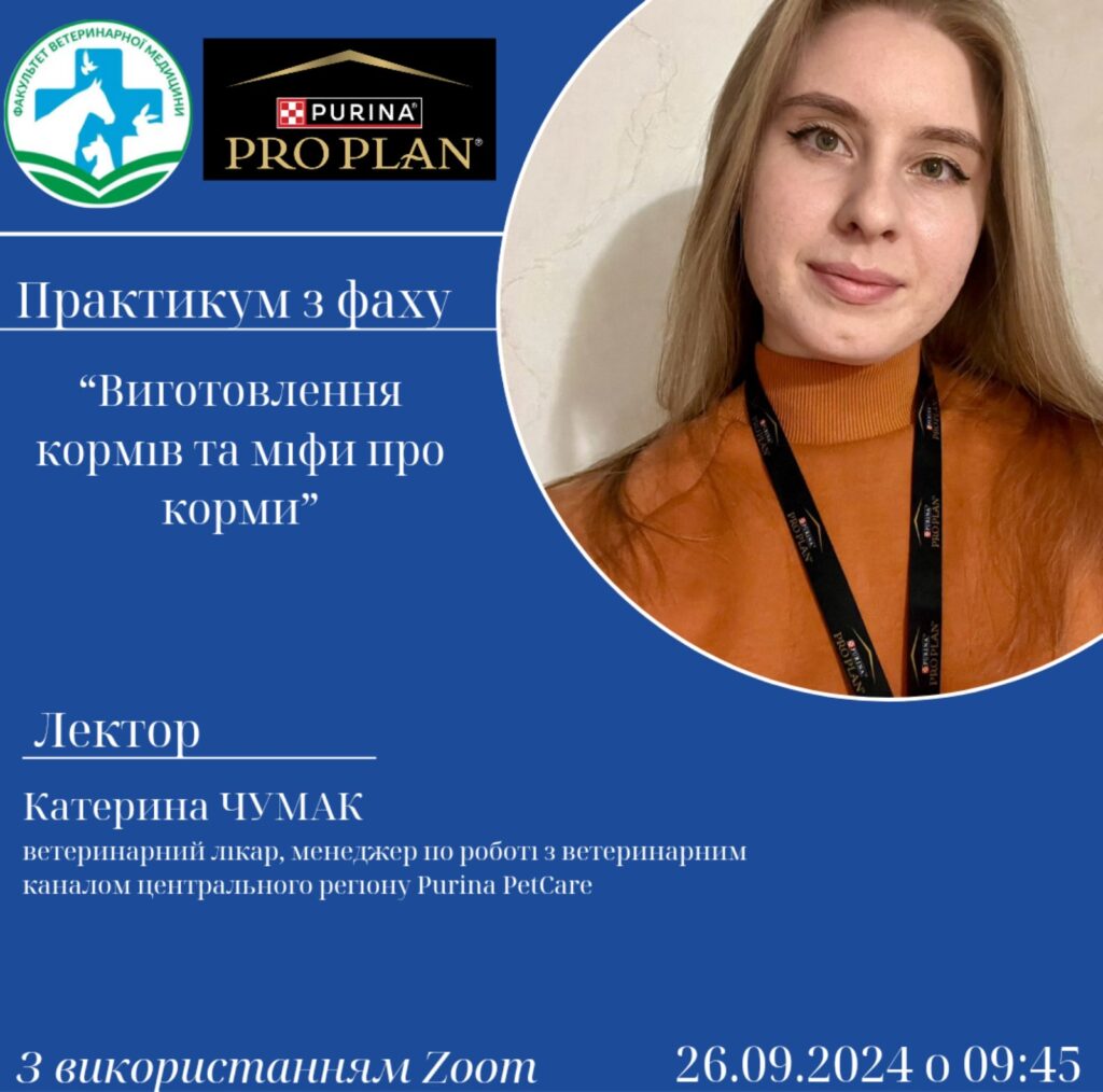 Студенти взяли участь у практикумі з фаху на тему виготовлення кормів та міфи про корми під час якого ознайомилися з сучасними технологіями та підходами в цій галузі. Лектор розповів про різні етапи виробництва кормів, починаючи з підбору інгредієнтів і закінчуючи пакуванням готової продукції. Особлива увага була приділена питанням якості сировини, впливу на здоров’я тварин та екологічності виробничих процесів.