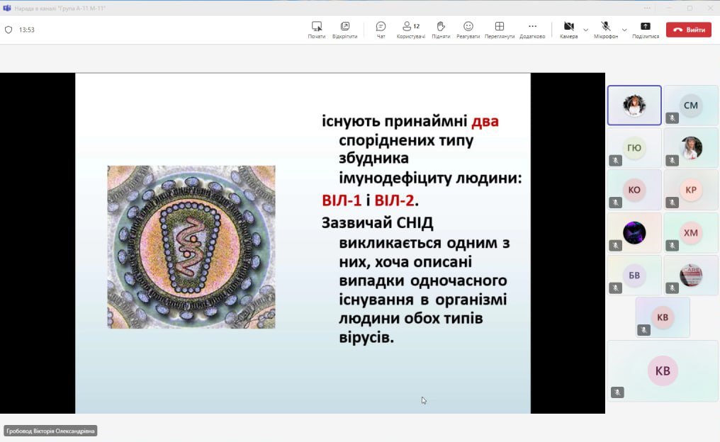Заняття включало мультимедійні презентації, інтерактивні моделі вірусу ВІЛ, відеоматеріали, що дозволило наочно продемонструвати: