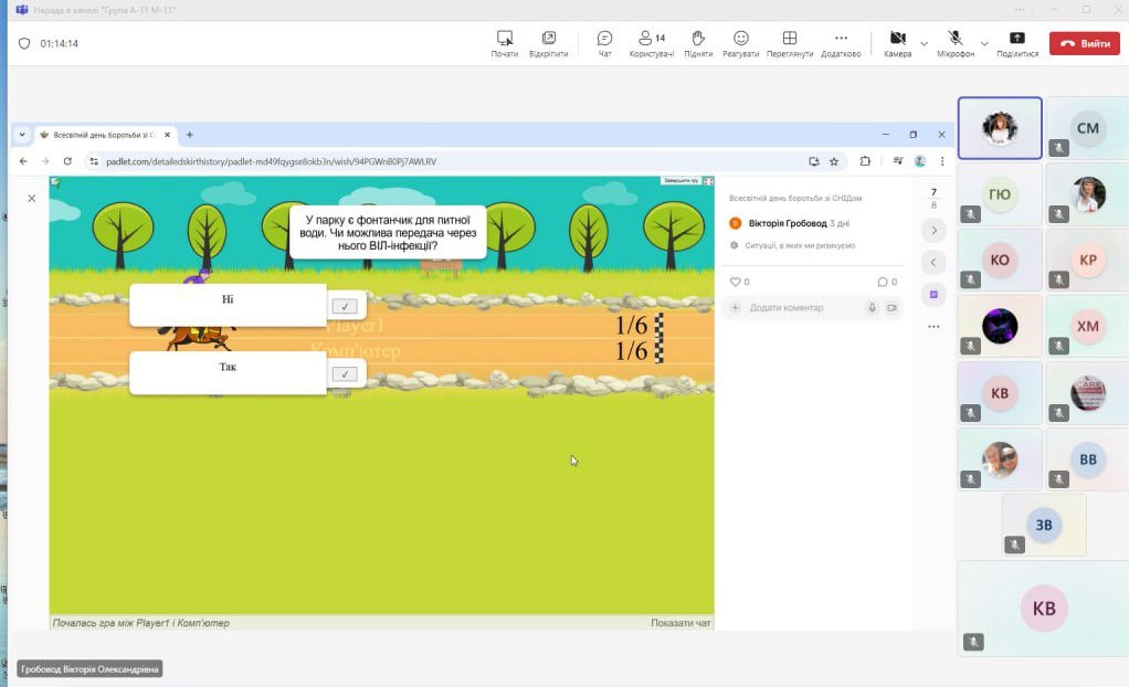 Наприкінці заняття учні взяли участь у вікторині, організованій на платформах LearningApps та Wordwall, де перевірили свої знання про ВІЛ/СНІД. Формат гри сприяв активному залученню всіх учасників.