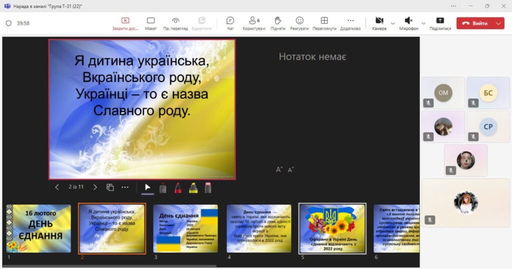 Окремим блоком виховної години стала дискусія на тему “Що означає єдність для мене?”, у якій учні поділилися своїми думками щодо згуртованості, взаємопідтримки та патріотизму.