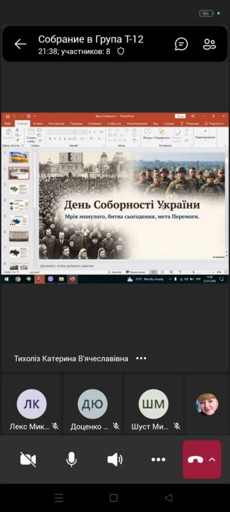22 січня у ВСП «Донецький фаховий коледж Східноукраїнського національного університету імені Володимира Даля» відбулася виховна година у форматі дискусійного клубу на тему: «Соборність сьогодні: виклики та перспективи», присвячена Дню Соборності України — одному з ключових державних свят, що символізує єдність українських земель і народу.