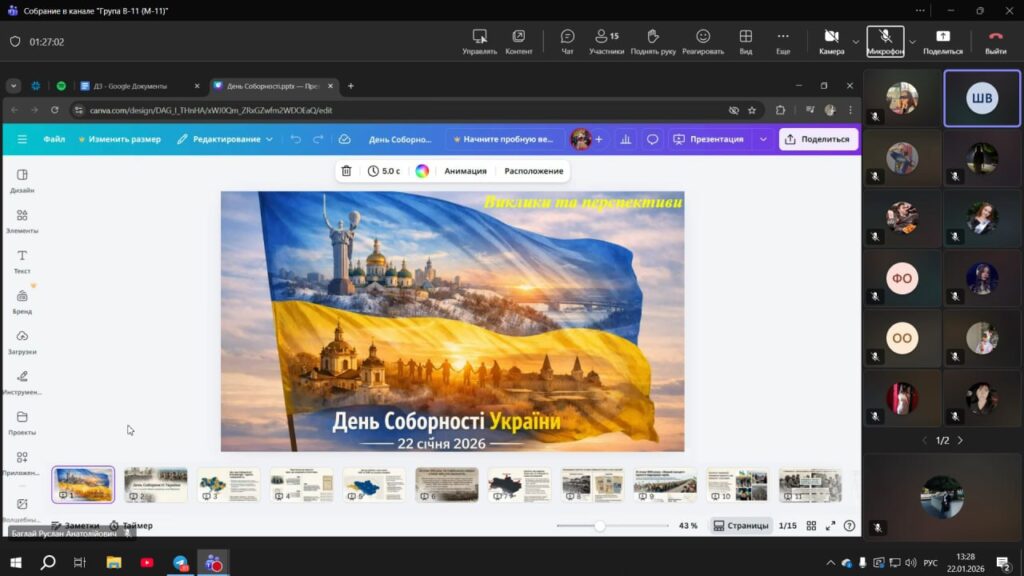 Метою заходу стало формування у здобувачів освіти усвідомлення значення соборності як історичного, політичного та духовного явища, розвиток критичного мислення, активної громадянської позиції та відповідальності за майбутнє держави.