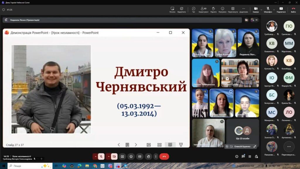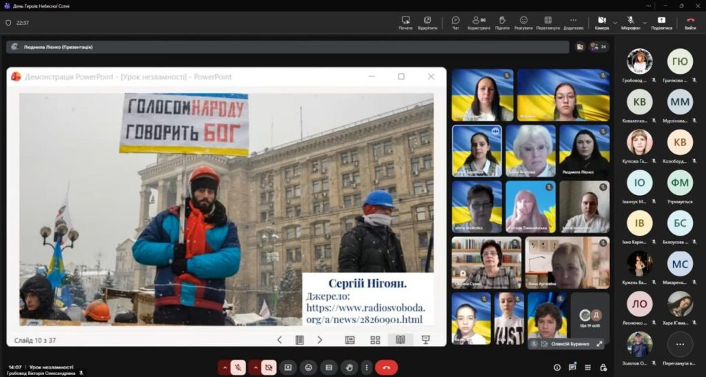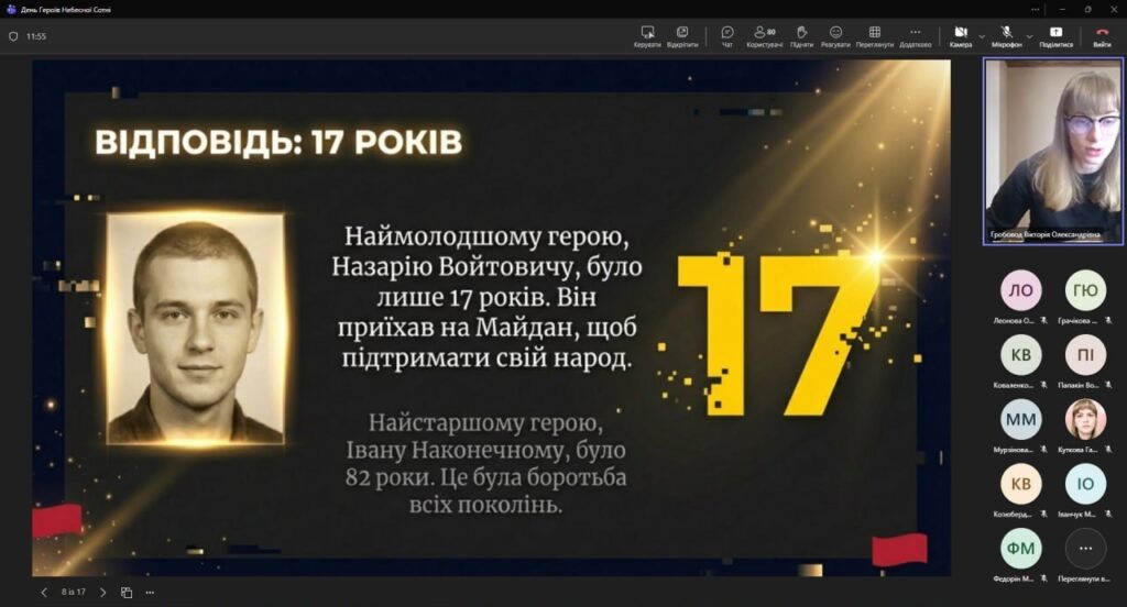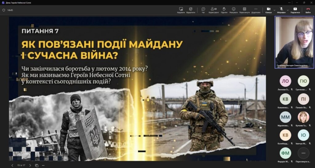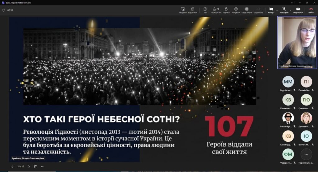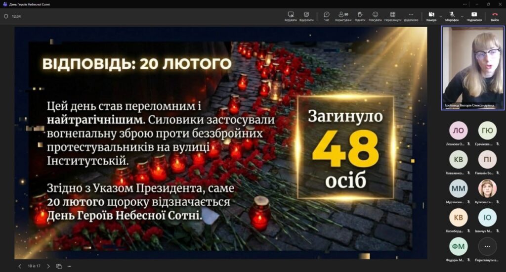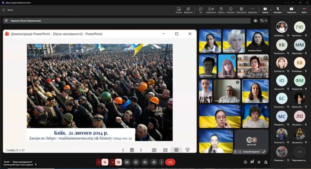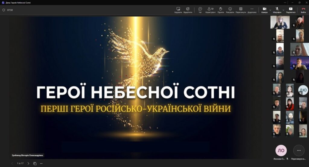 Після бесіди колектив коледжу долучився до загальнообласного уроку незламності «Нескорений Майдан. Історія майбутнього». Захід об’єднав освітні заклади області у спільному вшануванні пам’яті Героїв та осмисленні подій Майдану як визначального етапу становлення сучасної України.
