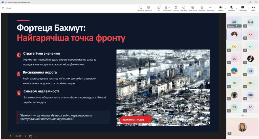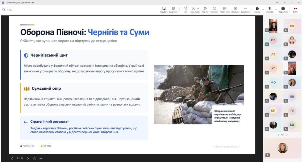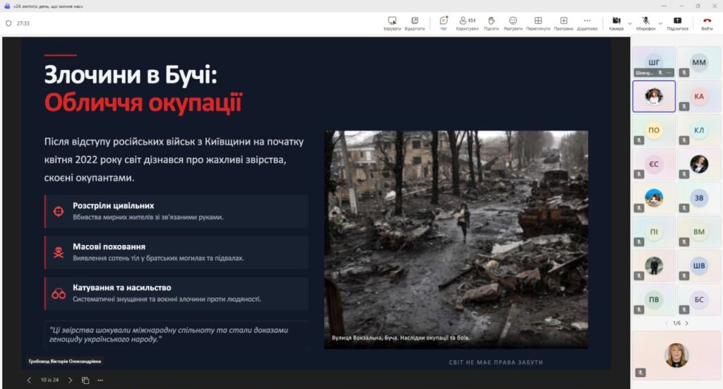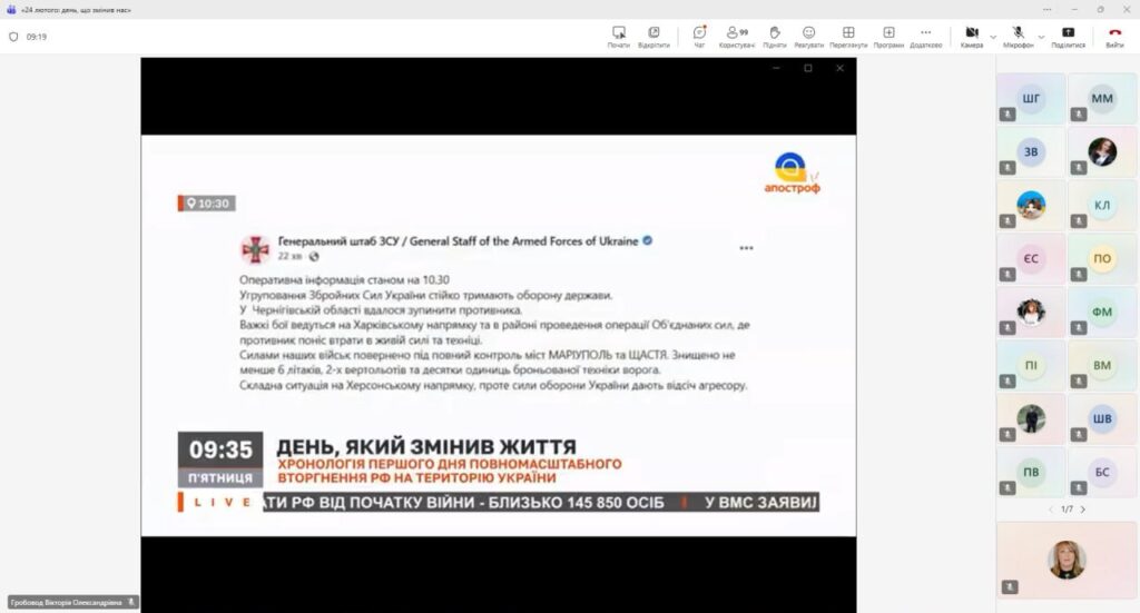 Особливу увагу було приділено хронології першої доби вторгнення: першим ракетним ударам, наступу з півночі, сходу та півдня, запровадженню воєнного стану та оголошенню загальної мобілізації. Студенти мали змогу ще раз усвідомити масштаб подій того ранку, коли о п’ятій годині світ для мільйонів українців змінився назавжди.