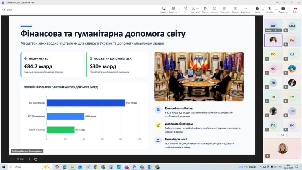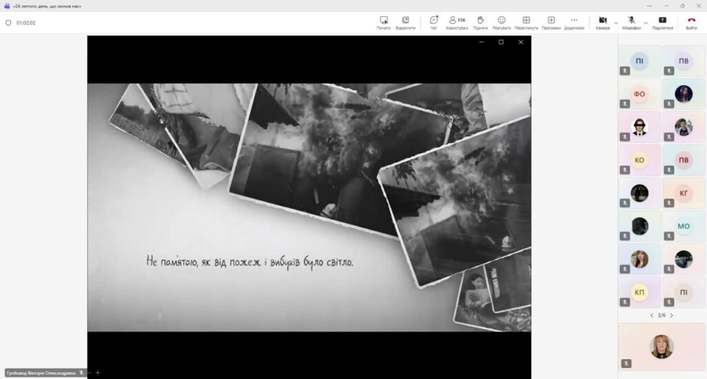 Захід став простором глибокого осмислення подій, які розділили життя українців на «до» і «після». Під час зустрічі здобувачі освіти переглянули тематичну презентацію «24 лютого 2022 — День, що змінив Україну назавжди», у якій було послідовно відтворено передумови повномасштабної агресії — від подій 2014 року до ранку 24 лютого 2022 року.