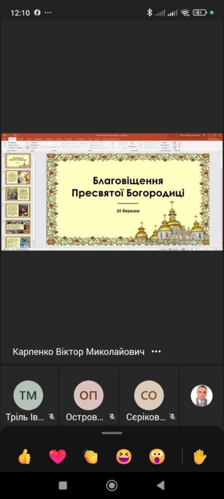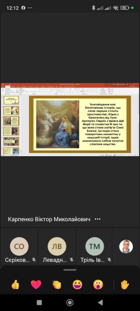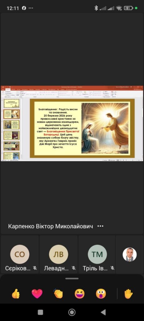 Під час зустрічі викладачі разом зі студентами розглянули історію свята Благовіщення, його релігійне значення та символіку. Особливу увагу було приділено українським народним традиціям, звичаям і прикметам, пов’язаним із цим днем. Студенти дізналися про давні вірування, що саме Благовіщення приносить у світ оновлення, пробудження природи та надію.
