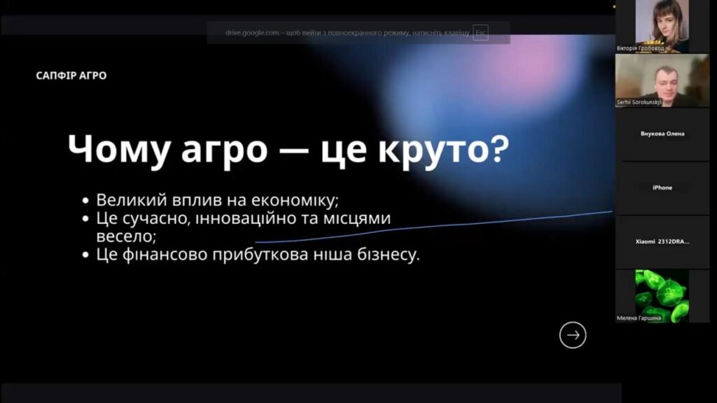Сьогодні у ВСП “Донецький фаховий коледж Східноукраїнського національного університету імені Володимира Даля” відбулася пізнавальна та надихаюча онлайн-зустріч студентів із відомим українським фермером і підприємцем — Сергій Сорокунський, засновником аграрної компанії Сапфір Агро.Захід проходив у дистанційному форматі, що дозволило залучити широку аудиторію студентів та забезпечити активну взаємодію з гостем. Під час зустрічі пан Сергій поділився власним досвідом становлення у сфері сільського господарства, розповів про сучасні виклики аграрного бізнесу в Україні та окреслив перспективи його розвитку.Особливу увагу спікер приділив впровадженню інноваційних технологій у сільське господарство, важливості екологічно відповідального виробництва та ролі молоді у трансформації аграрної галузі. Його виступ став цінним джерелом практичних знань і мотивації для студентів.