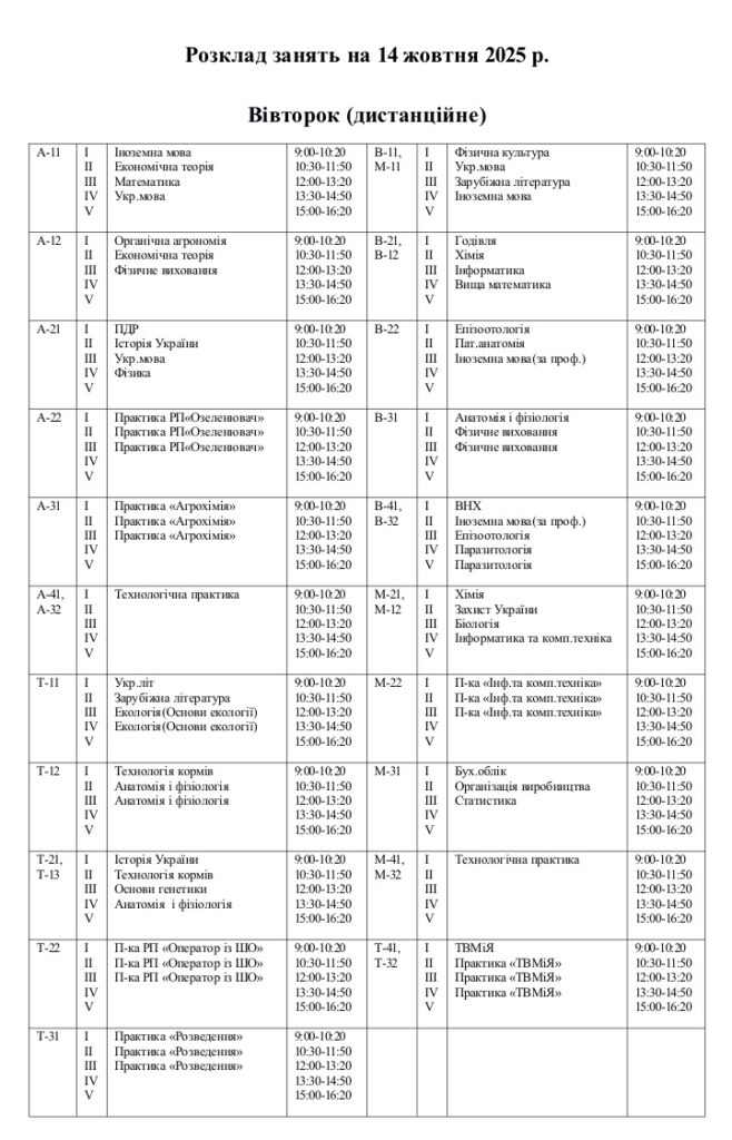 Розклад занять для студентів денної форми навчання з 01.09.2025 по 26.12.2025р. І семестр